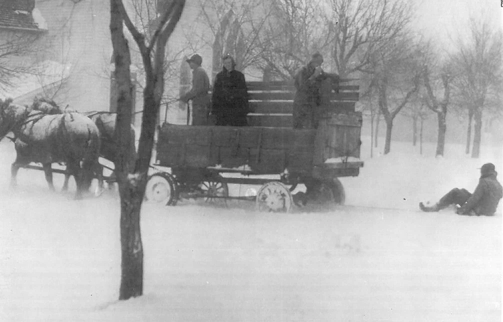 Unable to get around by automobile, Lorene Hickok, Mrs. Hickok and brother Verne Hickok used a horse-drawn wagon to make their milk deliveries. Journal Star file photo