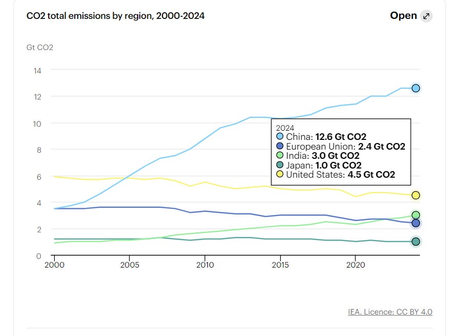 China gladly cheered on this economic suicide even as it built thousands of new coal-fired power plants to fuel its growth. Its increased emissions vastly overwhelmed European efforts to slow carbon release.