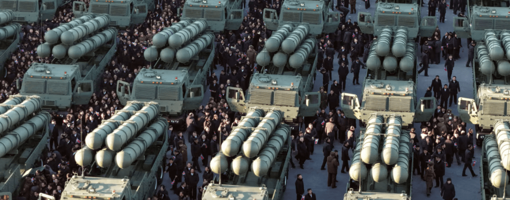 This photo provided by the North Korean government shows new launch vehicles for nuclear-capable short-range missiles during a military ceremony in Pyongyang in February. KOREAN CENTRAL NEWS AGENCY/KOREA NEWS SERVICE/ASSOCIATED PRESS