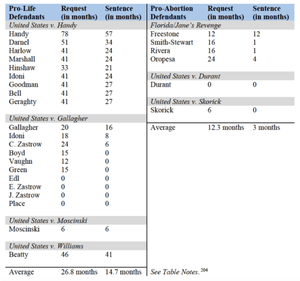Under Biden, the DOJ requests an average sentence of 26.8 months for pro-defendants, compared to 12.3 months for pro-abortion defendants.
